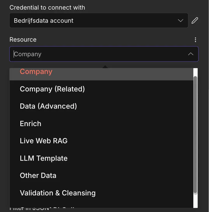 Bedrijfsdata.nl n8n node resources overview